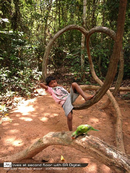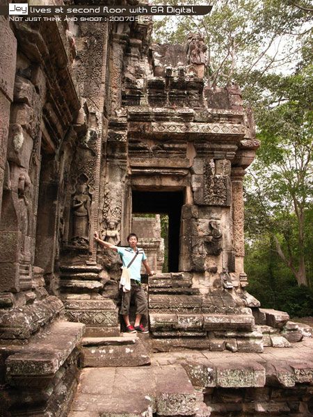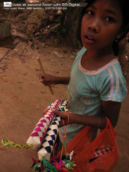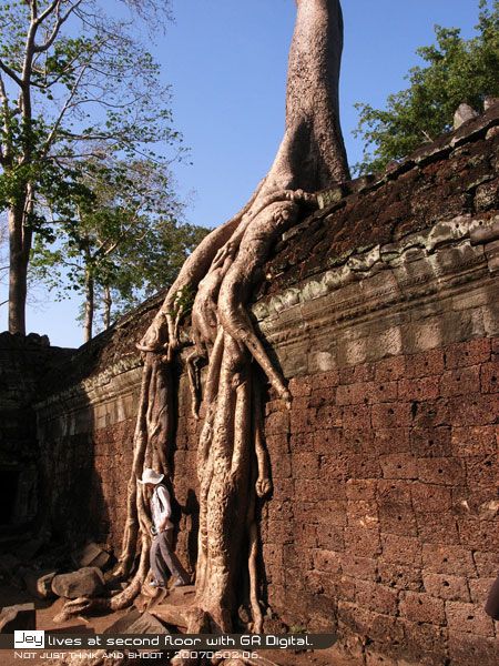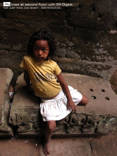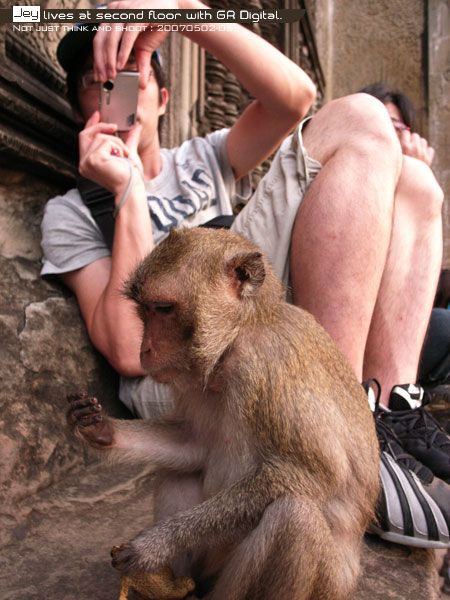 我猜他是長住在小吳哥城的小猴子,因為之前來過的同事也說看過他。他不怕人類地跨過每雙腳跟,手上抓著一隻黃青蛙,還活著的。時尚圈的人說那是他的包包,果然時尚,想必能掀起一陣旋風。接下來每個人放棄了他們失望的金色吳哥,開始包圍這隻猴子。