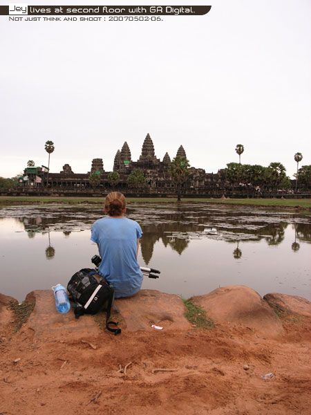 可惜這天雲層太厚,未能見到黃金吳哥。團員對領隊小夙抱怨沒有金色吳哥啊,想把遊覽車貼的「金色吳哥」改成「珍愛吳哥」。