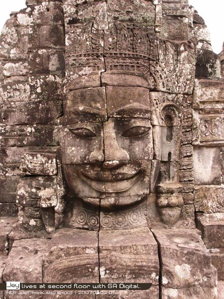 鼎鼎有名的微笑高棉,49座高塔上都有加亞跋摩七世,慈悲喜捨四個表情。到吳哥窟的遊客都會來跟他合照一張。